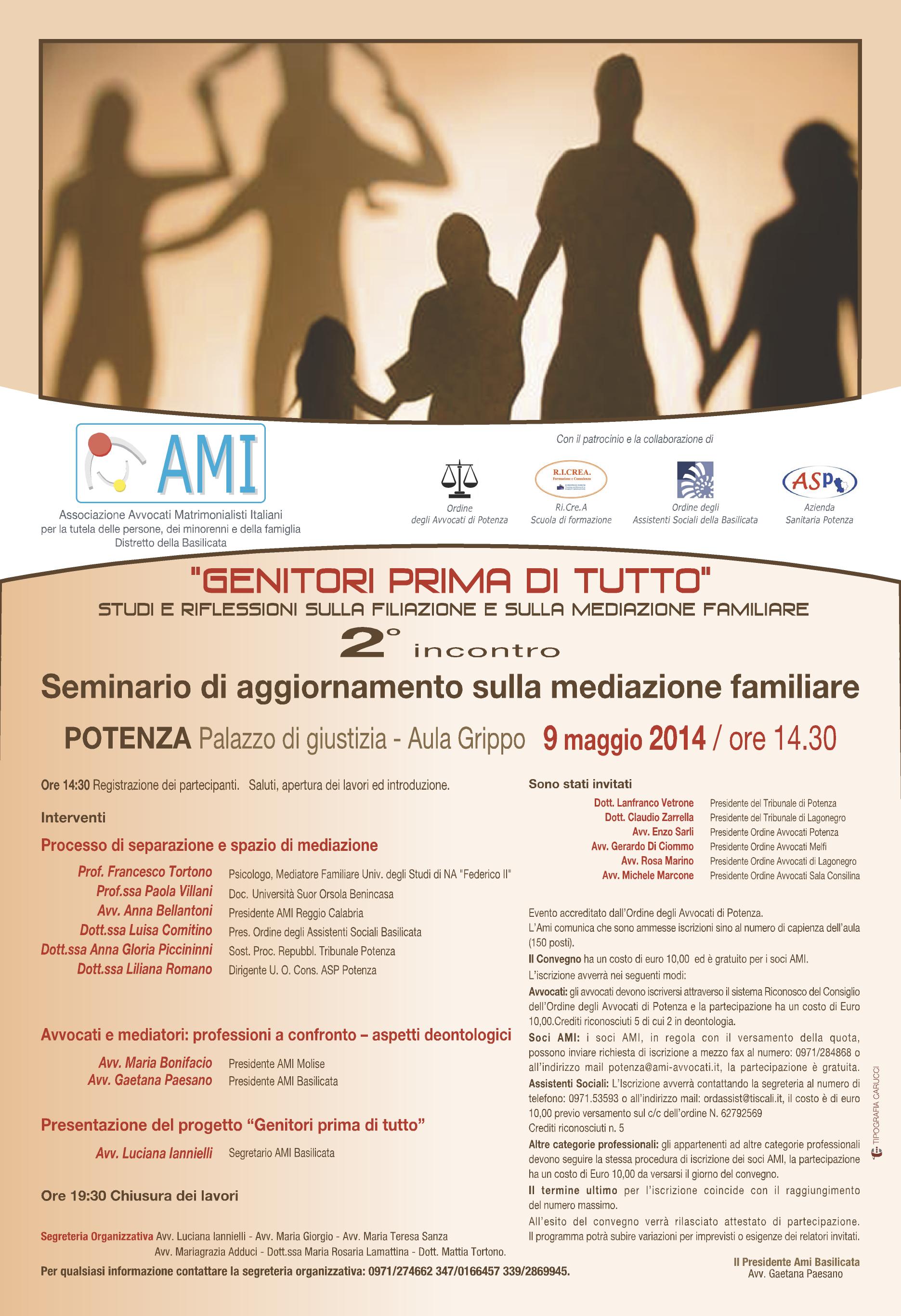 L’Unità Operativa Attività Consultoriali di Potenza e Villa D’Agri dell’Azienda Sanitaria di Potenza porterà l’esperienza del Servizio “Spazio Famiglia” nel Seminario di aggiornamento sulla mediazione familiare “Genitori prima di tutto” – Studi e riflessioni sulla filiazione e sulla mediazione familiare. La famiglia rappresenta il luogo privilegiato di crescita educativa, un contenitore di risorse e di potenzialità in un contesto in continuo divenire. Nella società attuale in rapida evoluzione che pone in discussione ruoli, valori, composizione e identità culturale, la coppia si può trovare ad affrontare difficoltà connesse al ruolo coniugale e/o genitoriale, non sempre possedendo le capacità e gli strumenti con cui gestire le problematiche. Ciò può rendere la famiglia più fragile, un punto di convergenza di tensioni e conflitti che ne determinano instabilità con tutto il carico di solitudine che può influire negativamente sulla possibilità dei singoli componenti di crescere e realizzarsi nello scambio interpersonale. Sempre più spesso gli operatori consultoriali si trovano ad affrontare problematiche legate alle difficoltà connesse al ruolo coniugale e genitoriale, sono chiamati a misurarsi con i cambiamenti socio-culturali in atto (separazioni, famiglie monogenitoriali, unioni di fatto, famiglie ricostituite, nuove parentele, famiglie miste culturalmente ecc.) che fanno della famiglia odierna lucana una realtà da incoraggiare e sostenere, da promuovere e arricchire, pena l’isolamento crescente, il malessere diffuso, il disagio specie dei minori.