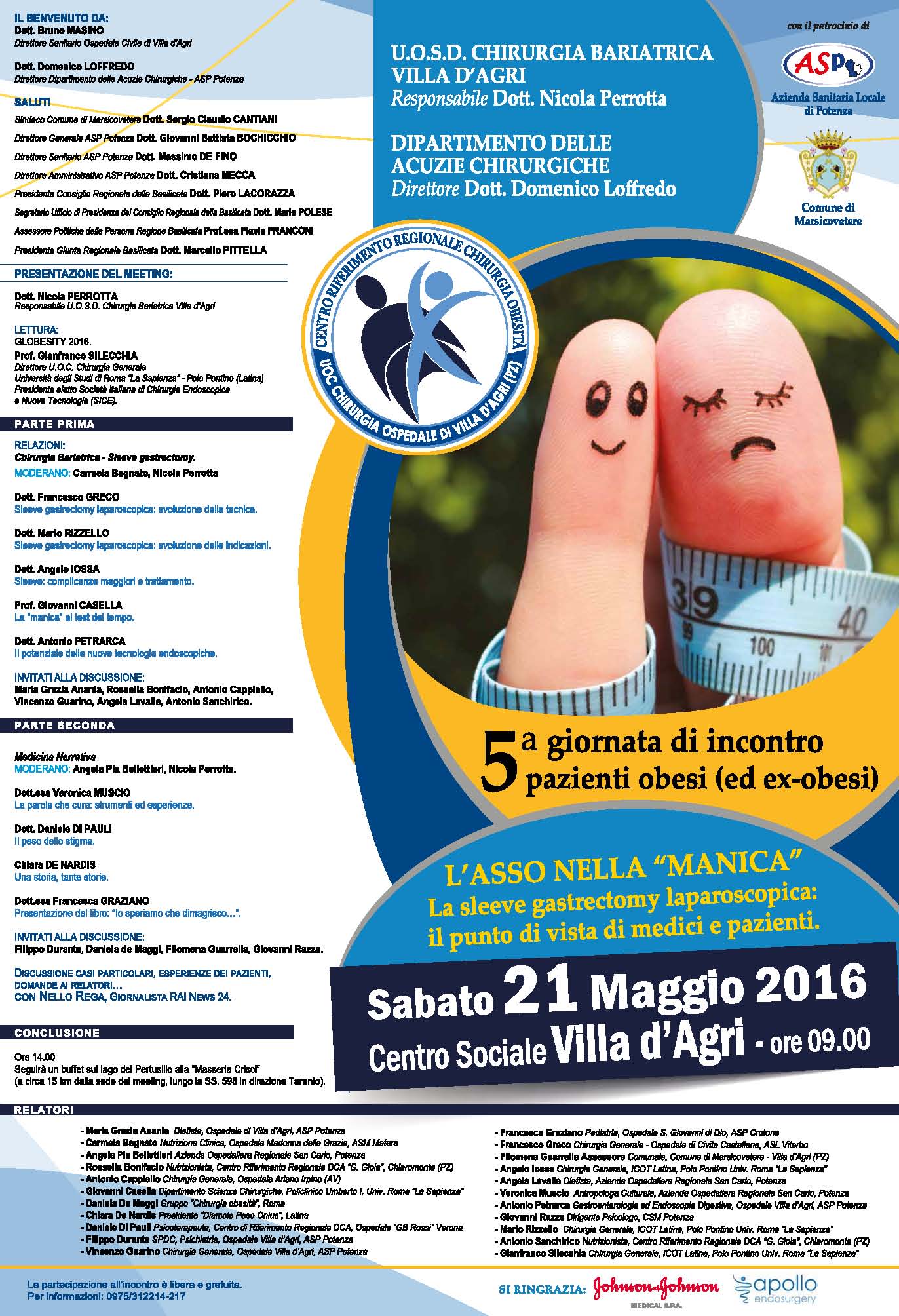 Organizzata dalla UOSD Chirurgia Bariatrica – Dip. delle Acuzie Chirurgiche P.O. di Villa d’Agri. Centro Sociale di Villa d’Agri – 21/5, ore 9,00