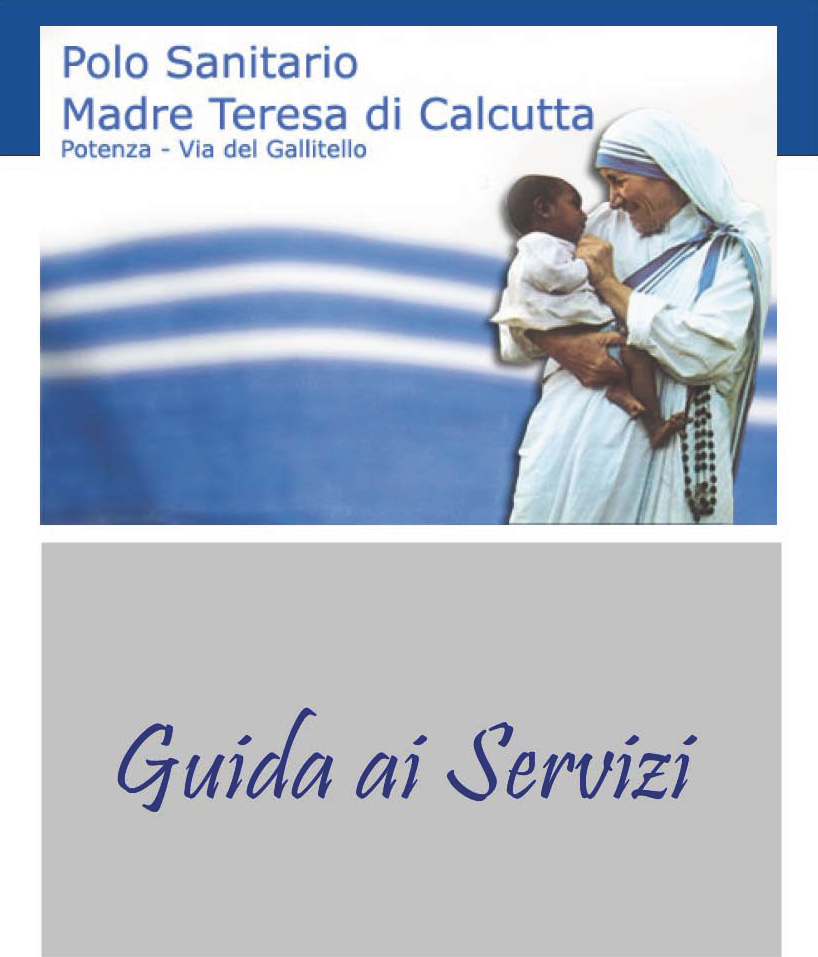 La Guida ai Servizi del Polo Sanitario di Potenza “Madre Teresa di Calcutta” è stata curata dall’URP di Potenza – URP Sede di Via del Gallitello, in collaborazione con la Direzione del Polo Sanitario. Contiene in forma sintetica il calendario delle prestazioni specialistiche con gli orari delle visite.