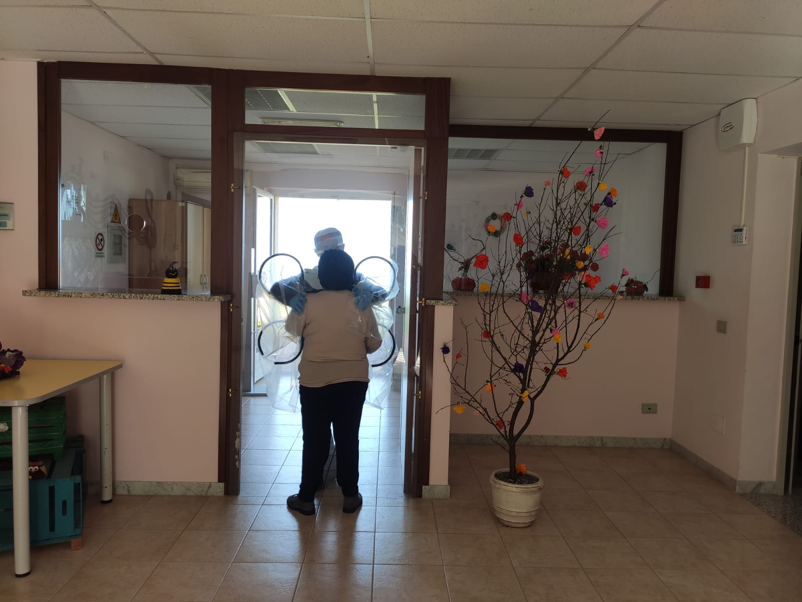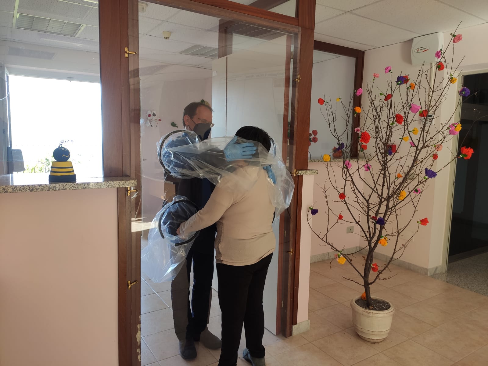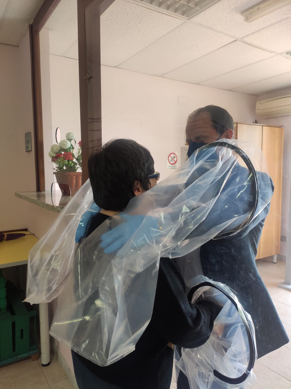 L’abbraccio, anche se attraverso una protezione, rimane il gesto d’amore più semplice e più grande che si possa fare verso le persone che si amano.