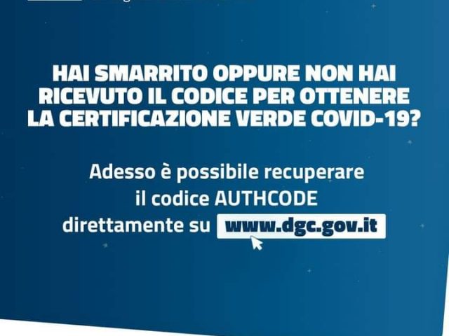 HOME > News > In primo piano > CERTIFICATO VERDE COVID-19: COME RECUPERARE AUTHCODE