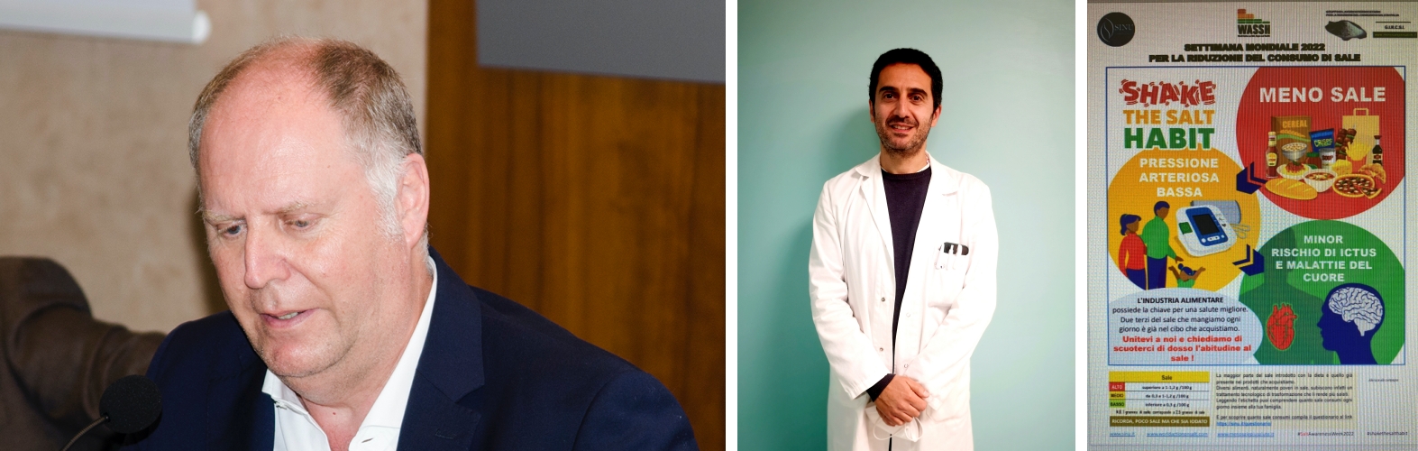 Il Direttore Generale ASP, Dr. Giampaolo Stopazzolo, Il Dr. Nicola Giordano e il manifesto dell’iniziativa “Salt Awareness Week”