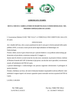 L’Associazione Diabetici FAND “TRE VALLI” e il TRIBUNALE PER I DIRITTI DEL MALATO di Lauria DENUNCIANO