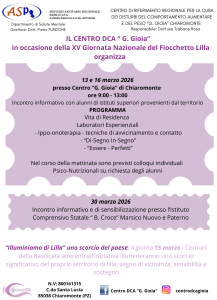 Torna l’appuntamento con la Giornata Nazionale del “Fiocchetto Lilla”, giunta alla 15° edizione e che intende sensibilizzare su prevenzione, diagnosi e cura dei disturbi della nutrizione e dell’alimentazione. Venerdì 13 presso la sede del ‘Centro per i Disturbi del Comportamento Alimentare e del peso’ di Chiaromonte, afferente all’Azienda Sanitaria Locale di Potenza, si terrà un incontro confronto con la popolazione studentesca e gli specialisti a partire dalle ore 9.00 alle 12.30, mentre lunedì 16 e 30 marzo sono previsti appuntamenti informativi sempre in sede.Tra i maggiori disturbi della nutrizione e dell’alimentazione vanno menzionati anoressia e bulimia oltre al disturbo da Alimentazione Incontrollata. Si tratta di problematiche di carattere psico-comportamentale che inducono i soggetti che ne soffrono a vivere il cibo ed il proprio corpo con ossessione e negazione, al punto di porre in atto anche episodi autolesionistici gravi.